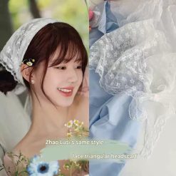 Bandana Kerudung Segitiga Renda, Headscarf Lace Style, Headscarf Renda Segitiga Motif Bunga