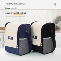 Wadah kotak makan siang persegi Tahan Air Bukaan Besar, Gaya Selempang & Jinjing untuk Kantor, Sekolah, dan Perjalanan, Wadah Bekal insulasi / dengan aluminium foil