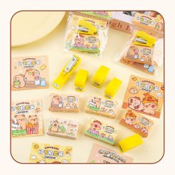 Set Stapler Mini Lucu Motik Capybara dan kartun Lainnya, Set Staples Alat Tulis Lucu Ukuran Kecil