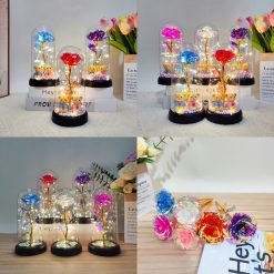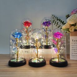 Lampu Dekorasi Bunga Mawar Kristal LED Premium dalam Kubah Transparan dengan Efek Cahaya Hangat untuk Dekorasi Meja dan Hadiah Elegan Romantis