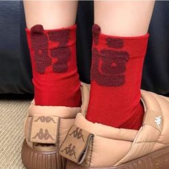 Kaos Kaki Merah Festive, Kaos Kaki Merah Imlek Style, Kaos Kaki Katun Tebal Pria Wanita