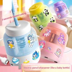 Rautan Pensil Elektrik Anak Bentuk Botol Susu, Peraut Pensil Elektrik bisa dicharge – Electric Pencil Sharpener Lucu USB