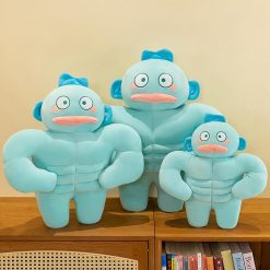 Bantal Peluk Ikan Biru Berotot, Plush Fish Kocak, Boneka Ikan Ugly Cute Berotot, Bantal Ikan Biru Imut Teman Tidur & Dekorasi