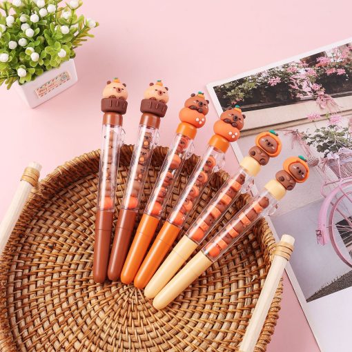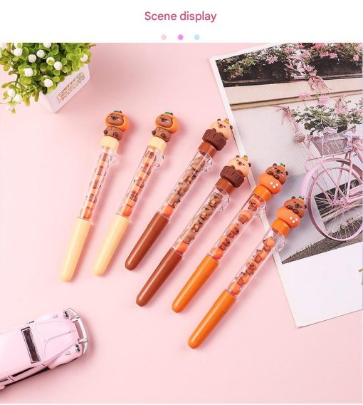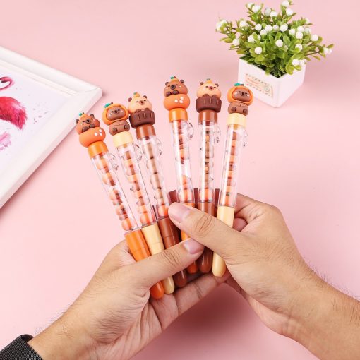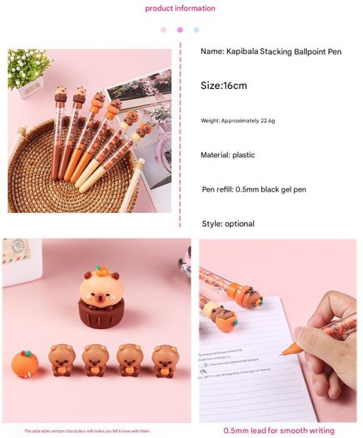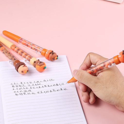 Pulpen gel dengan kepala boneka lucu yang bisa diputar, menghadirkan gaya menulis yang lebih menyenangkan. Bentuknya unik, ringan, dan cocok sebagai alat tulis maupun hadiah kecil.