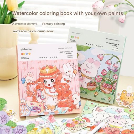 Buku mewarnai watercolor ini menghadirkan ilustrasi karakter lucu bergaya dongeng lengkap dengan palet warna solid dan pulpen air yang mudah digunakan. Cocok untuk aktivitas santai dan belajar seni secara menyenangkan di mana saja.