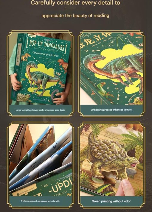 Buku ini dirancang dengan ilustrasi full color yang tajam dan menarik, serta struktur pop up yang kokoh. Cocok sebagai hadiah untuk anak pecinta dinosaurus dan sebagai media edukasi yang menyenangkan.