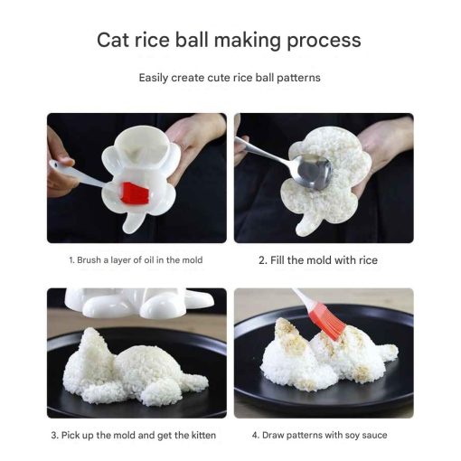 uat waktu makan jadi menyenangkan dengan Kitten Rice Ball Mold! Cetakan nasi berbentuk kucing ini membantu Anda menyajikan makanan lucu dan menarik untuk anak-anak. Terbuat dari bahan food grade, aman, dan mudah dibersihkan, alat ini cocok untuk membuat nasi, sushi, atau cemilan lucu lainnya.