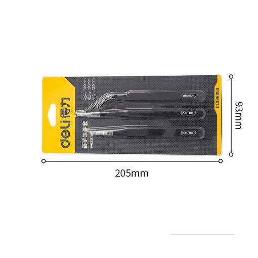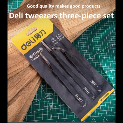 Deli Tools Pinset Set 3 Pcs DL396003 adalah set pinset presisi berbahan stainless steel yang kuat dan tahan karat. Terdiri dari model lurus dan bengkok, cocok untuk pekerjaan detail seperti menjahit, servis mesin jahit, elektronik, kerajinan, hingga perbaikan kecil.