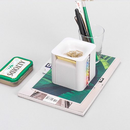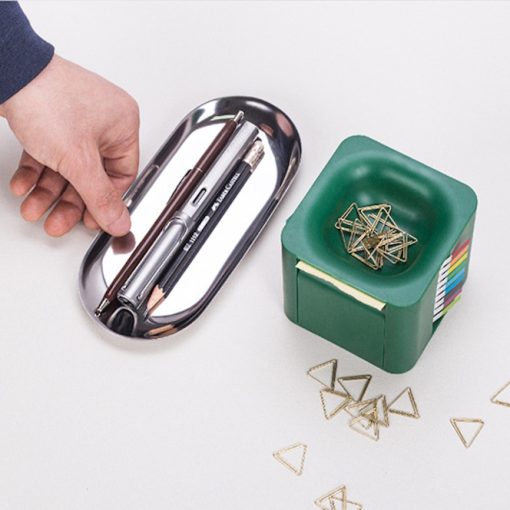 Desainnya minimalis dan fungsional, cocok digunakan di meja kantor, meja belajar, maupun ruang kerja rumah. Semua kebutuhan catatan kecil dan penjepit kertas tersimpan rapi dalam satu wadah hemat ruang.