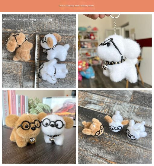 Gantungan anjing kacamata ini hadir dengan desain bulu lembut dan ekspresi menggemaskan. Dilengkapi kacamata kecil dan lonceng lucu di lehernya, membuat tampilannya seperti anabul kecil yang siap menemani tas atau kunci kamu ke mana saja.