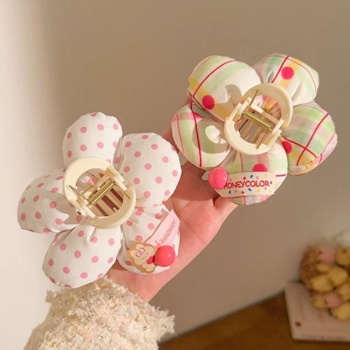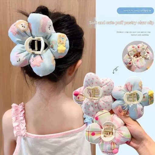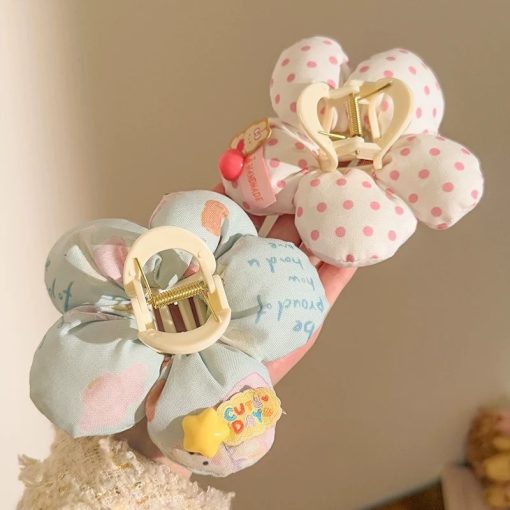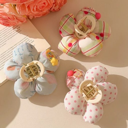 Jepit rambut bunga empuk ini menghadirkan tampilan manis dan lembut untuk anak maupun dewasa. Bagian bunga dibuat dari bahan kain tebal yang empuk seperti bantal, sehingga memberikan aksen rambut yang besar dan menarik. Jepit claw clip di bagian belakang kuat menahan rambut tanpa membuat sakit atau menarik rambut berlebihan.