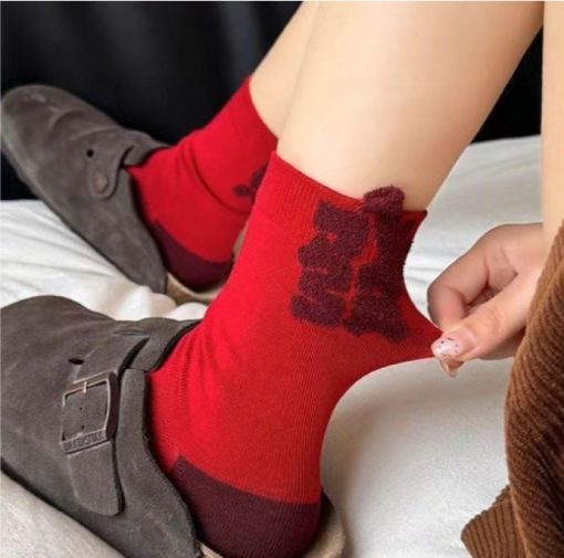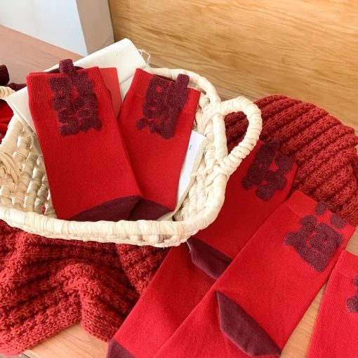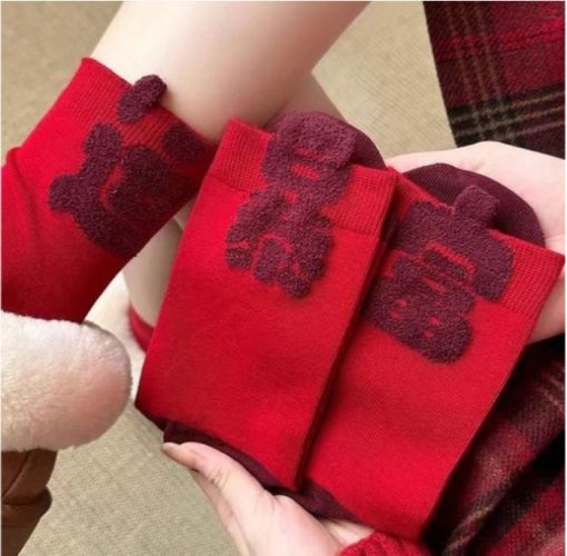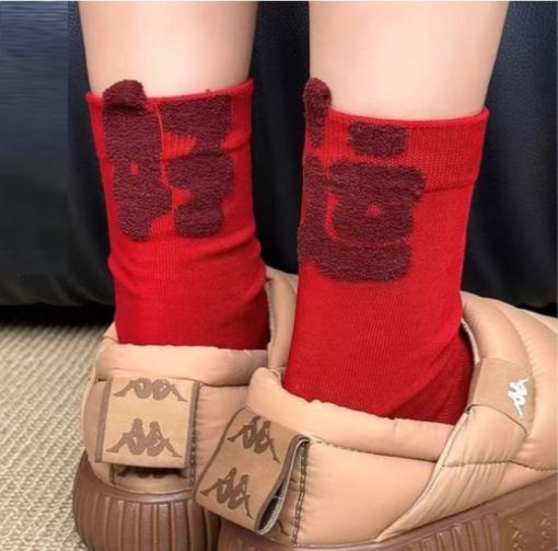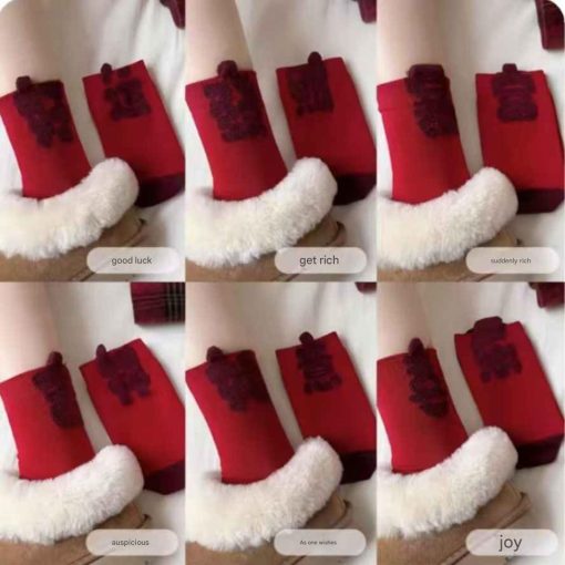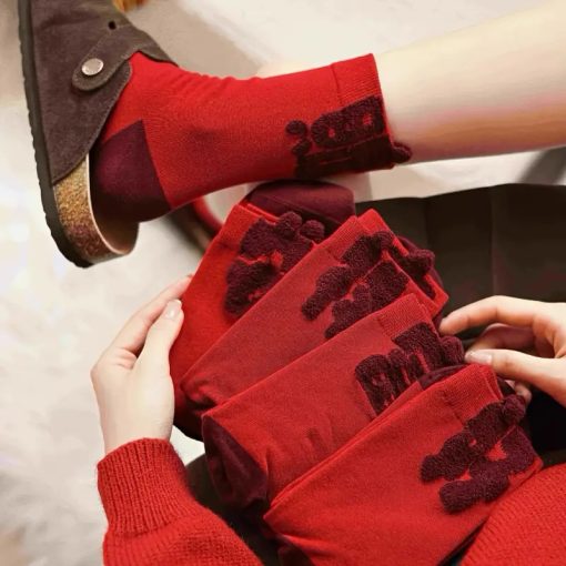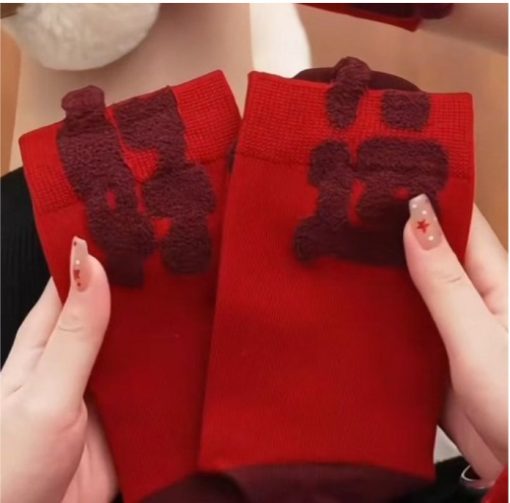 Kaos kaki merah festive dengan desain Natal dan Tahun Baru, cocok untuk menambah suasana perayaan yang hangat dan meriah. Warna merah melambangkan keberuntungan, semangat, dan rezeki, sehingga pas digunakan saat momen spesial atau sebagai hadiah.