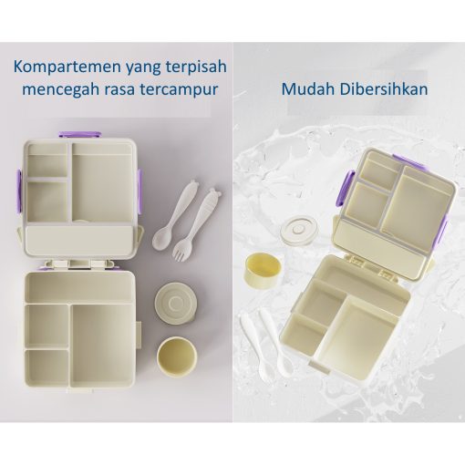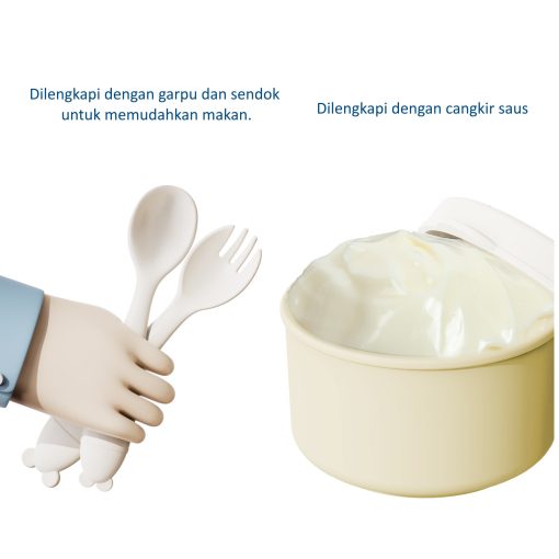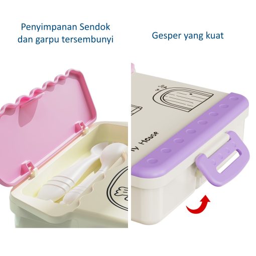 Desain kedap udara memastikan makanan tidak tumpah, sementara bahan food-grade memberikan keamanan ekstra untuk anak.