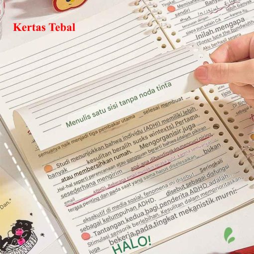 Buku Catatan Lepas / Loose Leaf Notebook A5 dan B5 untuk Pelajar, dengan garis spiral halus yang tidak membuat jari lecet, desain kartun lucu, halaman dapat dilepas-pasang. 📒🐻