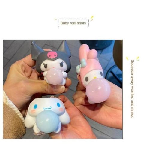 Gantungan kunci lucu dengan desain karakter imut yang dilengkapi efek squishy pada bagian mulut seperti gelembung permen karet. Terbuat dari bahan berkualitas tinggi yang lembut, elastis, dan nyaman saat dipencet, memberikan efek anti stres yang menyenangkan. Produk ini memiliki ukuran yang pas di genggaman tangan dan ringan dibawa ke mana saja.