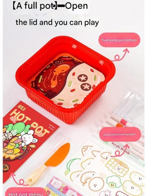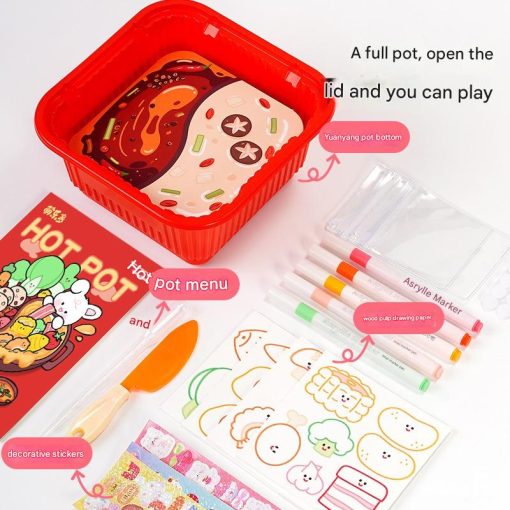 Seru dan unik! Mainan DIY Hotpot ini mengajak anak bermain sekaligus belajar mengenal warna, bentuk makanan, dan meningkatkan kreativitas. Dikemas dalam wadah seperti mangkuk hotpot, anak-anak bisa menggambar, menempel stiker lucu, dan bermain peran seolah-olah sedang memasak hotpot!