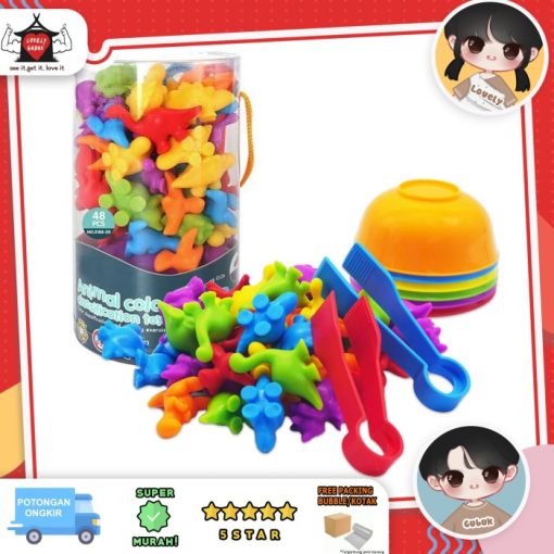 Mainan montessori sortir warna adalah mainan yang diperlukan banget anak untuk eksplorasi warna dan sortir warna. Untuk model yang bisa belajar matematika bisa beli di sini: https://www.tokopedia.com/lovelygubuk/mainan-edukasi-early-education-card-matematika-3d-peraga Di lengkapi dengan 6 mangkuk berwarna dan capit. Sangat cocok digunakan untuk mengajarkan si kecil tentang color, numbers and counting, classifying, sorting, patterns dll. isi dlm Dino 48 pc animal 36 pc wild animal 36 pc transportasi 36 pc family 40 pc sea animal 56 pc Product Features: ·Rich colors, exercise children's cognition of colors ·Interesting animal models to strengthen babies' cognition of animals ·Fine motor training ·Exercising baby's hands-on ability Description: Product Name: Rainbow Counting Soft Rubber Animal Toy Terms: 100% brand new (high quality) Main Material: TPE Suitable Age:> 3 years old Size:17*9*9CM(about) Note: Random colors of animals Products Include: Animal shape and quantity (as shown in the option picture), color small bowl*6, clip*2 Function: Early education, interaction, parent-child, color cognition, classification, math learning, animal cognition