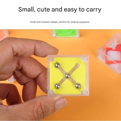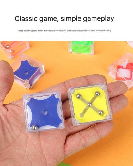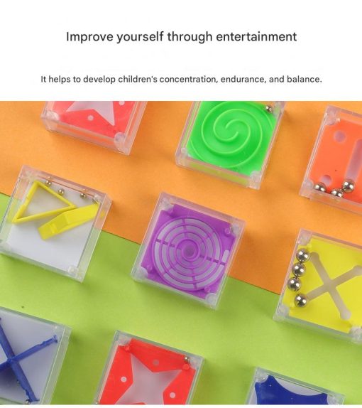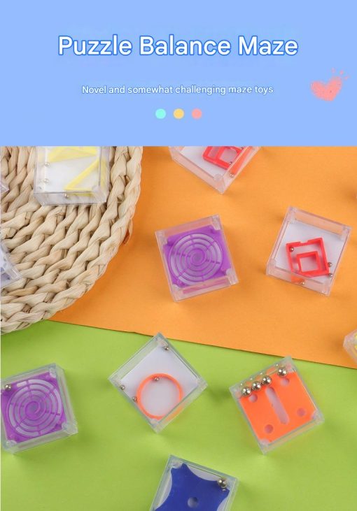 Mainan labirin mini berbentuk kotak transparan dengan bola logam kecil di dalamnya. Dirancang untuk melatih fokus, kesabaran, dan koordinasi tangan melalui permainan keseimbangan yang sederhana namun menantang.