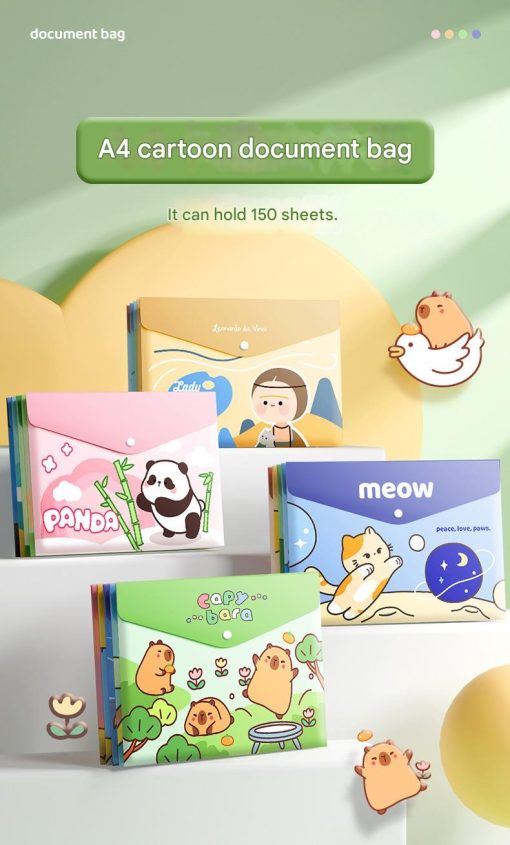 Map dokumen dengan desain karakter lucu yang menghadirkan tampilan ceria. Kapasitas besar sehingga dapat menampung banyak lembaran kertas, cocok untuk kebutuhan sekolah, kantor, maupun penyimpanan pribadi.