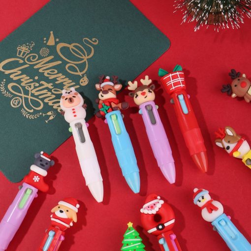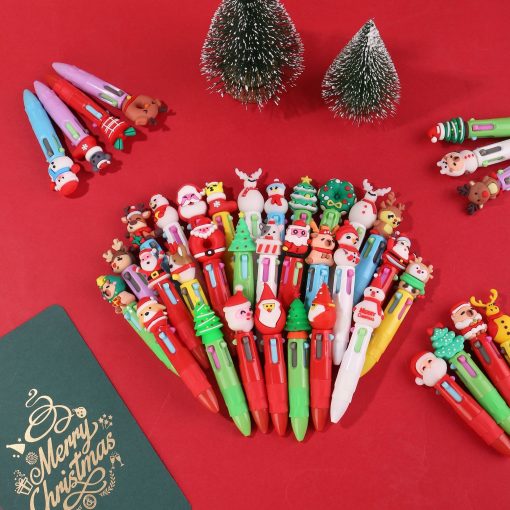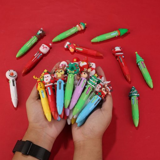 Pulpen mini bertema Natal dengan empat warna tinta dalam satu pena, tampil dengan desain mungil dan ceria khas musim liburan. Ukurannya pendek dan ringkas, membuatnya mudah dibawa untuk kegiatan sekolah, kantor, maupun catatan harian.