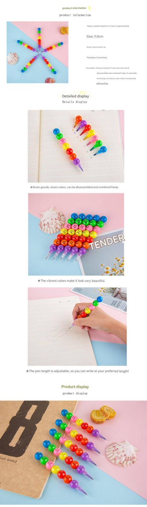 Pensil Warna Rainbow 1 Set Isi 7 Warna/ 5 warna adalah set pensil warna dengan desain susun yang praktis dan unik. Setiap pensil terdiri dari beberapa bagian kecil berwarna yang dapat dilepas dan disusun kembali, menghadirkan pengalaman menggambar yang lebih menyenangkan. Motif rainbow dan emoji membuat tampilannya ceria, cocok untuk anak-anak yang suka aktivitas mewarnai penuh warna.
