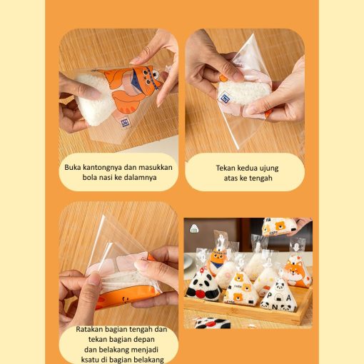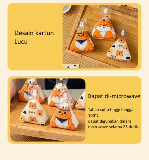 Plastik pembungkus onigiri segitiga berbahan OPP berkualitas untuk menjaga nasi tetap segar