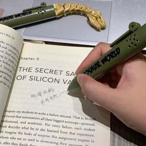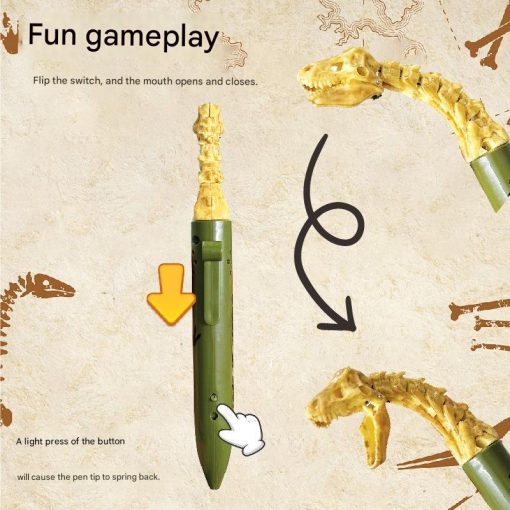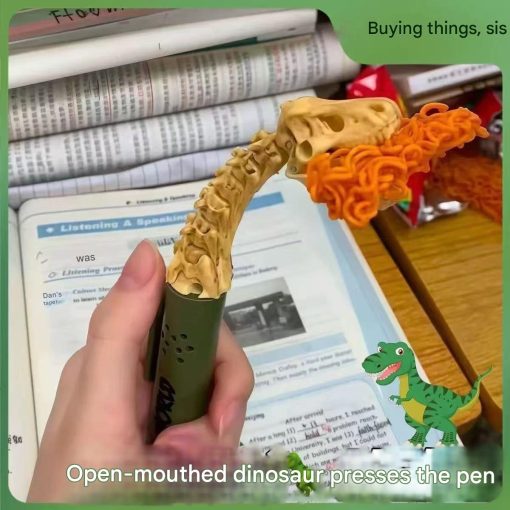 Pulpen berbentuk kerangka dinosaurus dengan fitur leher yang bisa goyang dan mulut yang dapat dibuka. Desainnya yang unik membuat pulpen ini tidak hanya berfungsi untuk menulis, tetapi juga sebagai mainan kecil yang menghibur.