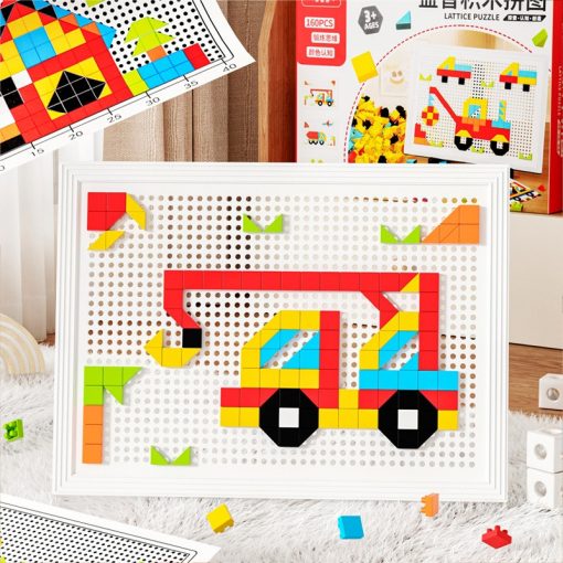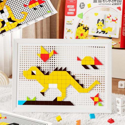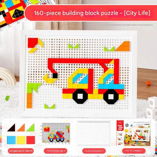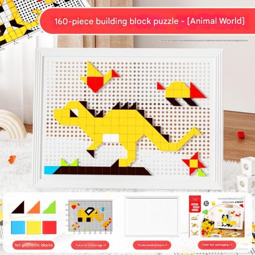 Mainan Building Block Puzzle dengan 160 keping berbentuk geometri yang dapat disusun menjadi berbagai karakter binatang dan bentuk lain. Dilengkapi papan gambar berlubang sehingga anak lebih mudah menempel dan menyesuaikan pola. Membantu mengembangkan kreativitas, ketelitian, dan koordinasi tangan anak. Cocok sebagai hadiah edukasi di rumah.