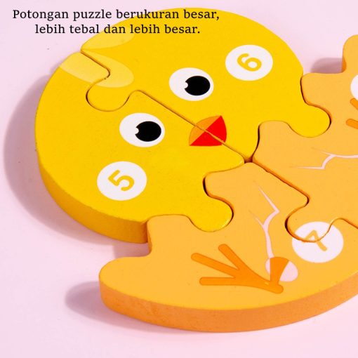 Potongan puzzle tebal dan mudah digenggam, cocok untuk anak usia 3 tahun ke atas sebagai media belajar sains dasar yang menyenangkan.
