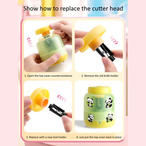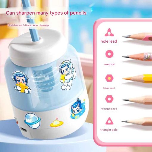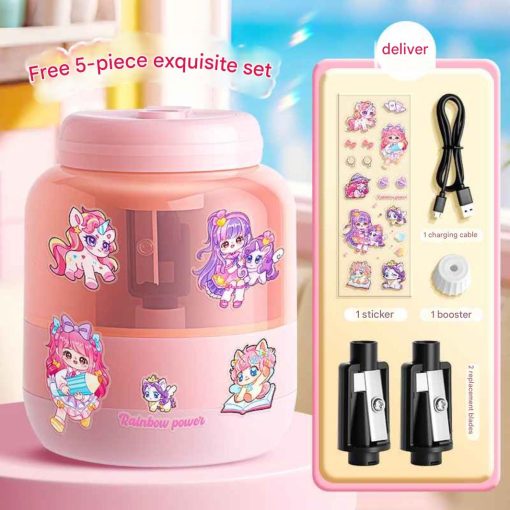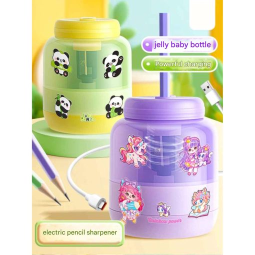 Rautan pensil elektrik dengan desain botol susu yang lucu dan warna pastel yang disukai anak-anak. Cocok untuk kebutuhan sekolah, belajar di rumah, atau meja belajar agar lebih rapi dan menyenangkan.