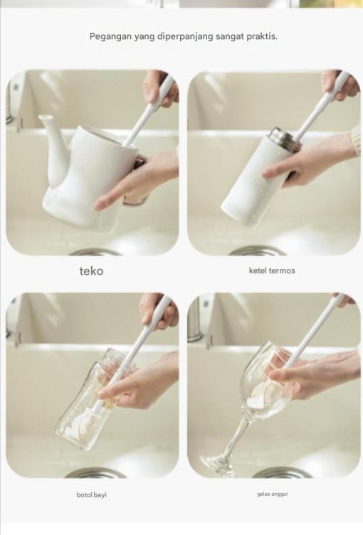 Sikat pembersih botol silikon ini dirancang untuk memudahkan membersihkan gelas, botol, termos, dan peralatan minum lainnya. Terbuat dari bahan silikon yang lentur sehingga dapat menjangkau sudut sempit dan permukaan yang sulit dibersihkan oleh sikat biasa.