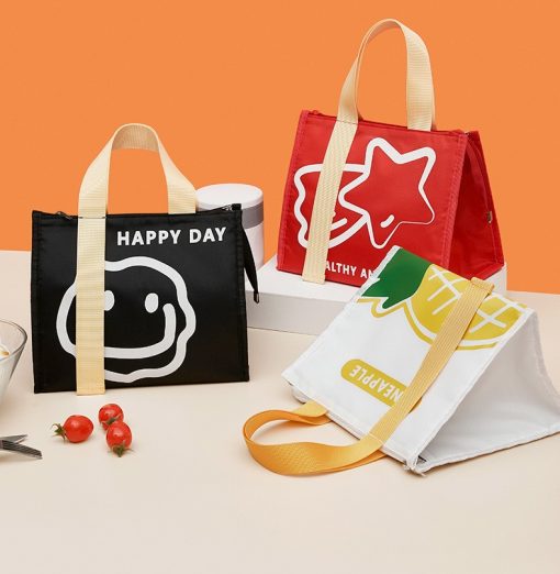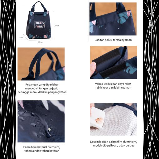 Tempat atau wadah bekal lucu dengan desain berwarna cerah dan bahan tahan air. Dilengkapi lapisan insulasi untuk menjaga suhu makanan tetap hangat atau dingin lebih lama. Ringan, praktis, dan cocok dibawa ke kantor, sekolah, atau piknik.