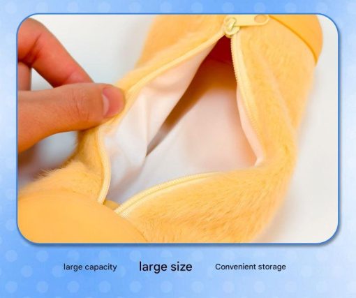 Perpaduan plush lembut dan kepala silikon membuat produk terlihat seperti mainan sekaligus wadah fungsional. Bentuk silindris dan ekspresi karakter yang imut menjadikan pouch ini menonjol dibanding tempat pensil biasa, cocok untuk koleksi maupun hadiah.
