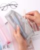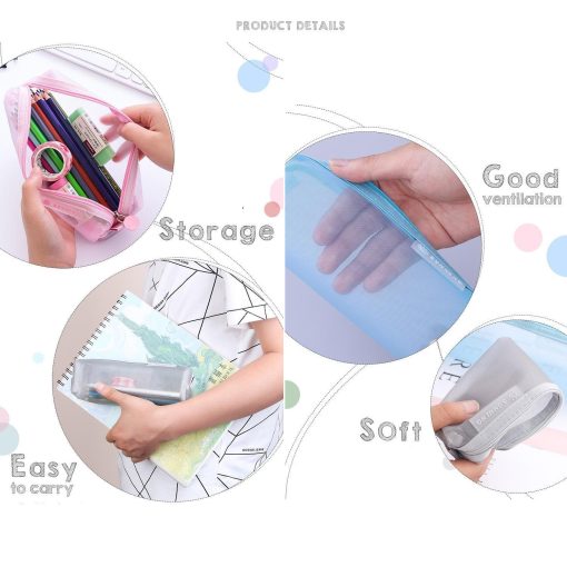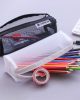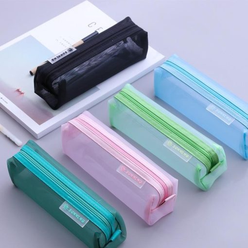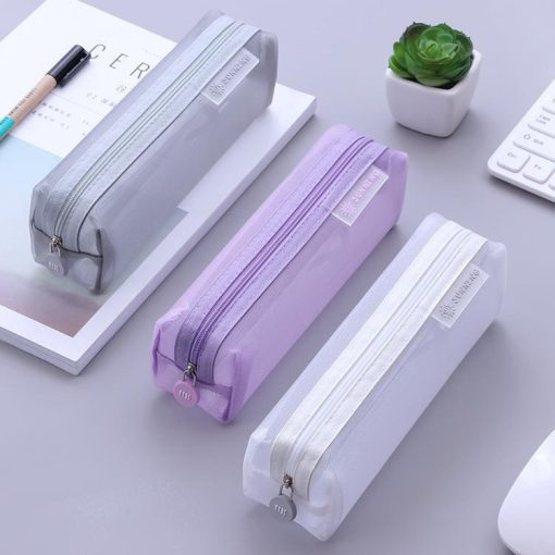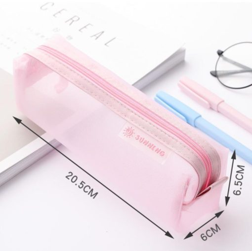 Tempat pensilJaring Transparant dengan desain mesh (jaring) transparan dan minimalis, cocok digunakan untuk ujian sekolah karena isi di dalamnya mudah terlihat. Desain sederhana namun tetap stylish, cocok untuk siswa SD, SMP, hingga SMA.