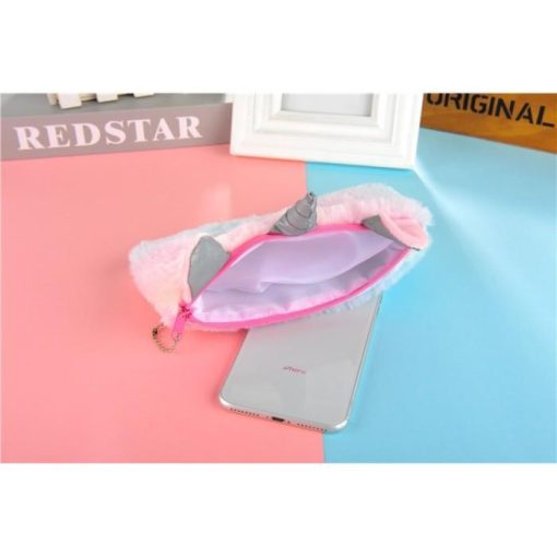 Tempat Pensil Lembut Unicorn, Tempat Pensil Bahan Plush, Tempat HP, Tempat Kosmetik Lucu