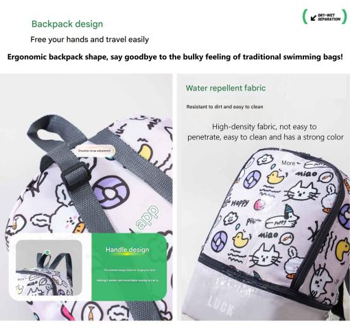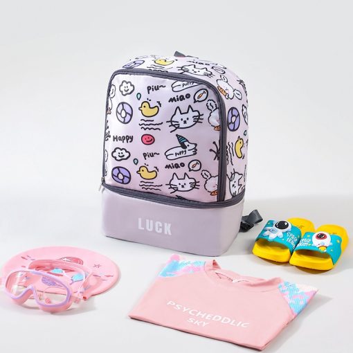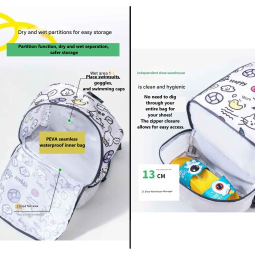 Tempat Perlengkapan Renang Anak Lucu Waterproof dengan Kompartemen Basah dan Kering Bentuk Ransel – Motif Kartun Lucu | Wadah perlengkapan Kolam Renang Anak lucu