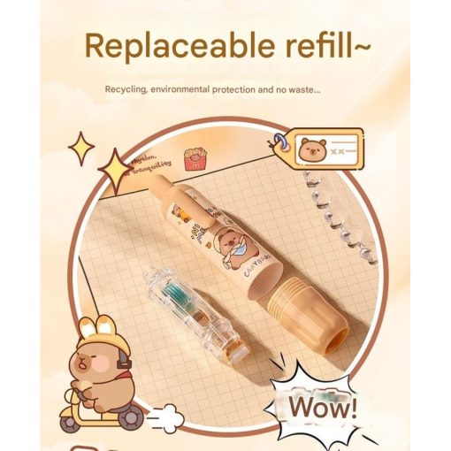 Inovasi produk terbaru untuk kebutuhan anak sekolah atau kantor. Biasanya double lem yang ada dipasaran agak susah pakainya, Sering kena tangan atau belepotan. Nah Tape double lem ini bentuk seperti tip ex, gampang pakainya, bisa untuk art kerajinan tangan dan kalau salah bisa dihapus lemnya dengan tangan loh. Model baru kini bisa derak 360 derajat jadi lebih fleksibel