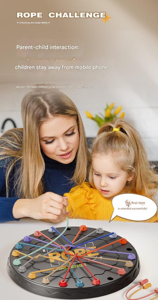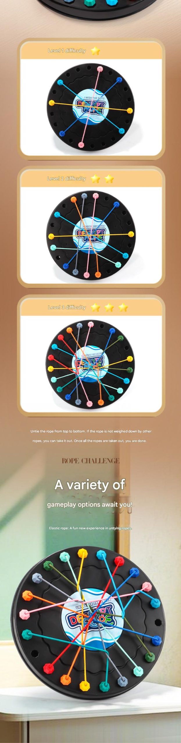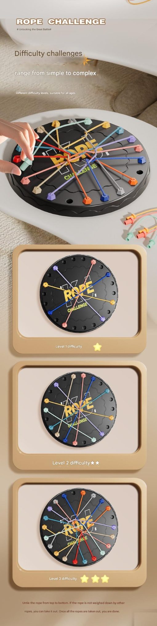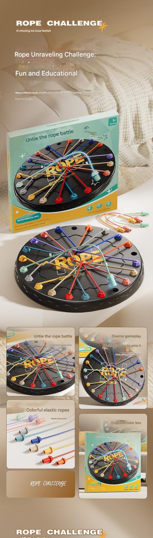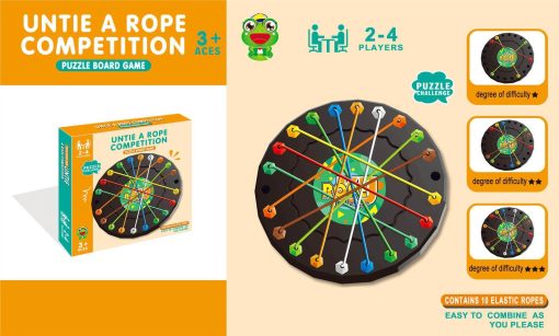 Permainan papan berbentuk puzzle dengan tantangan unik untuk melepas tali tanpa membuatnya kusut. Dirancang untuk melatih konsentrasi, logika, dan kesabaran, permainan ini cocok dimainkan bersama teman atau keluarga dengan suasana yang santai dan menyenangkan.