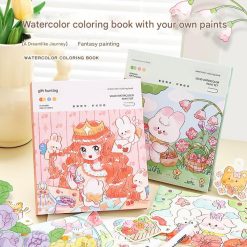 Buku Mewarnai Cat Air Anak Bergambar Karakter Lucu dengan Palet Warna dan Kuas Praktis